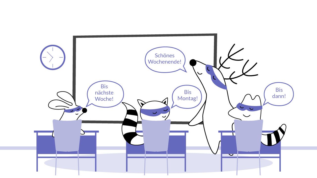 It’s also a pretty formal way to say goodbye in German. While you are leaving school and saying "see you later" (bis später) or "see you tomorrow" (bis morgen) to your friends, try to wish your teacher a "Schönes Wochenende."
